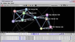 Features such as animated playback, 3D navigation, 3D layout algorithms, selection and highlighting tools, message filtration, and an interactive timeline give the user
