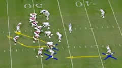 markings are only visible underneath the players and stay locked on the field as the camera moves. The telestration can